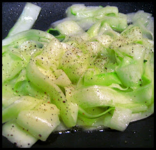 Overrun with zucchini? Trying to eat healthier? Going gluten-free? Try replacing your pasta with zucchini ribbons. Not convinced? Check this out...it takes seconds to make, is very low in calories (one medium sized zucchini only has about 25 calories) and is rich in Vitamin C (also it's good source of vitamin B6, riboflavin and manganese). In addition, this recipe only requires a few ingredients and one pan. Gotta love that! Now, you can top it off with whatever you want (the recipe suggests marinara sauce or Parmesan) but I've found it to be quite tasty with just a few turns of the pepper grinder.