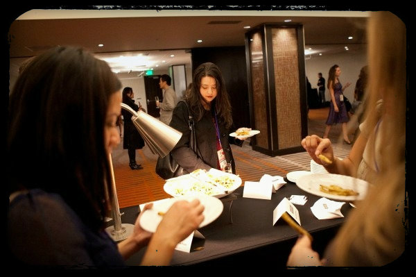 While in line I met several bloggers, including the super adorable Josh from Just Eat! who joined us for drinks at the top of the Hyatt. After cocktails, Foodbuzz bussed us over to the Terra Gallery in the SoMa district for a welcome reception, blogger award ceremony and dinner. Rumor was that at last year's festival a lot of bloggers were snooty and cliquey, I found the ones I met to be the complete opposite. Everyone I spoke to, whether it was on the bus, the cocktail party or the dinner was super friendly (but I could see if how if you're not an extroverted person how difficult an event like this could be). What I didn't anticipate was that there were going to be so many kinds of bloggers there- male, female, mom bloggers, single bloggers, vegans, ethnic food bloggers, and lots of bakers! Some people like Julie from Willow Bird Baking came from far away (she had flown in from North Carolina!) and others like Dorothy from Crazy for Crust turned out to live in my hometown. There also seemed to be a good mix of festival "veterans" and newbies.